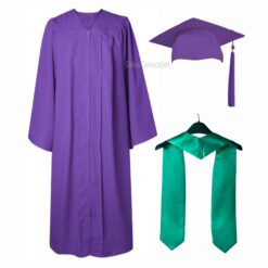 Purple Matte Graduation Gown and Cap with Emerald Green Stole