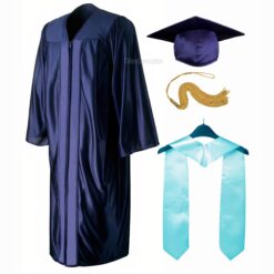 Navy Blue Shiny Convocation Gown and Cap with Sky Blue Stole