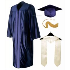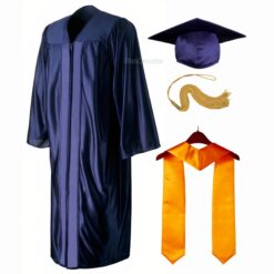 Navy Blue Shiny Convocation Gown and Cap with Yellow Stole