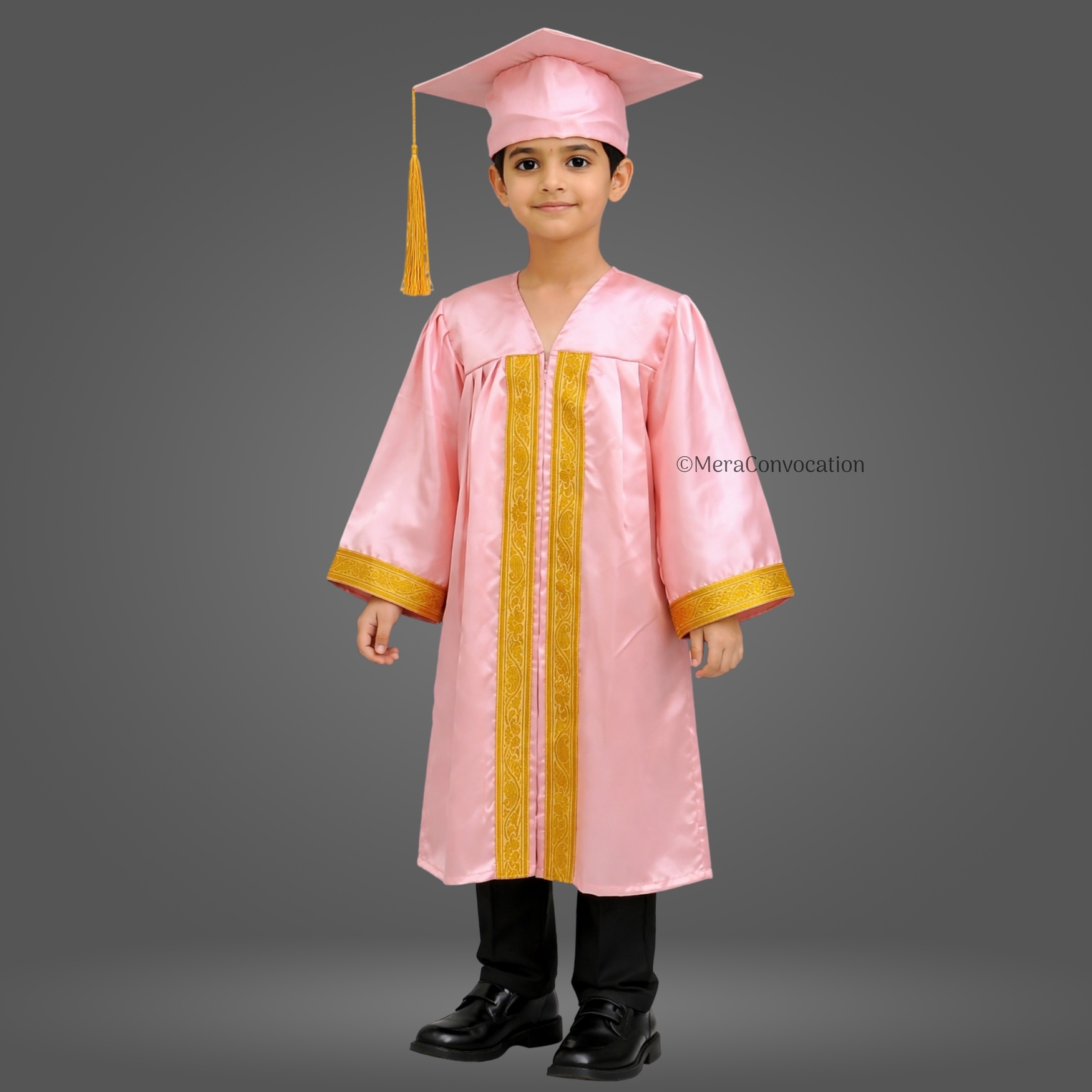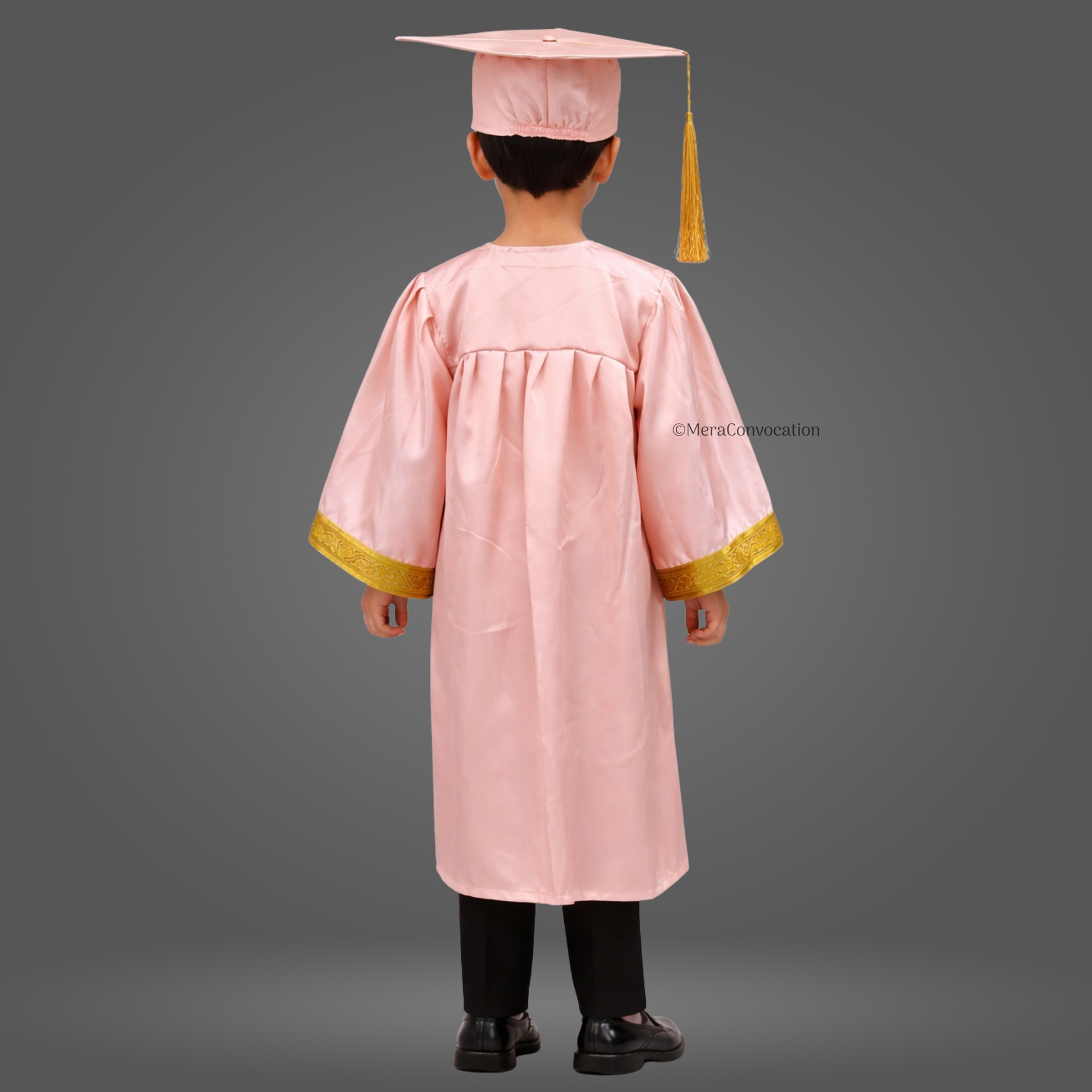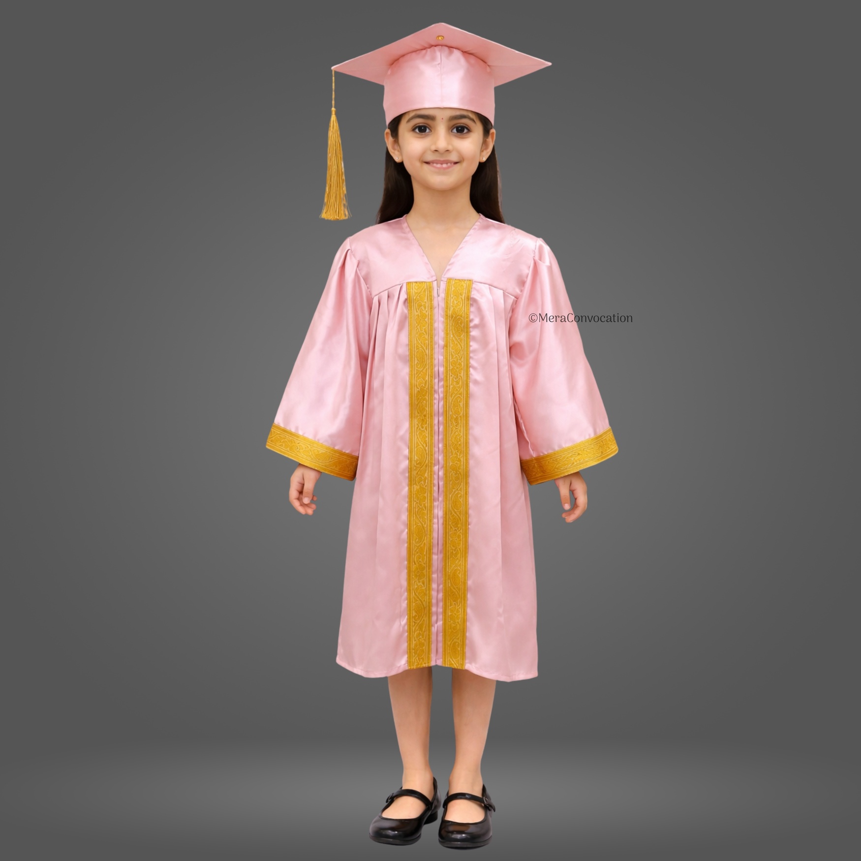 Baby Pink Shiny Kids Graduation Gown with Golden Border and Cap