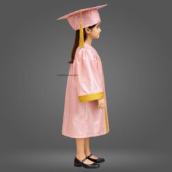 Baby Pink Shiny Nursery Kids Graduation Gown attached with 1.5 Inch Golden Border & Cap Set. Crafted from premium satin fabric with a glossy finish, this complete graduation set is designed for comfort and style.