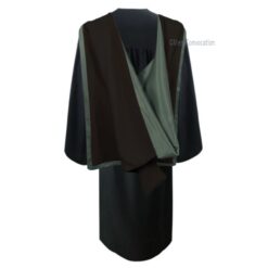 Black Graduation Gown and Cap with Black and Olive Green Hood