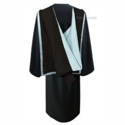 Black Graduation Gown and Cap with Black and Sky Blue Hood