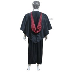 Black Graduation Gown and Cap with Maroon and Black Hood