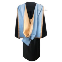 Black Graduation Gown and Cap with Sky Blue and Cream Hood