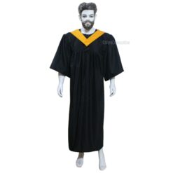 This is Black Matt Finish Graduation Gown and Cap along with the Yellow & Grey Hood. We have used best quality of polyester as well as Satin fabric to make this complete set of graduation robe. For more information about the product, kindly refer the main description.
