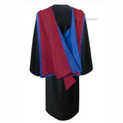 Black Matte Graduation Gown and Cap with Maroon and Royal Blue Hood