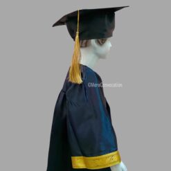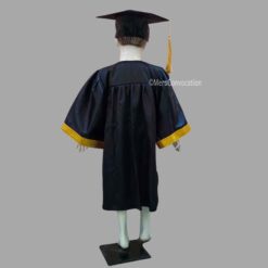 Black Shiny Nursery Kids Graduation Gown with attached Golden Border and Cap! We use the best quality satin fabric to make a complete graduation gown & cap.