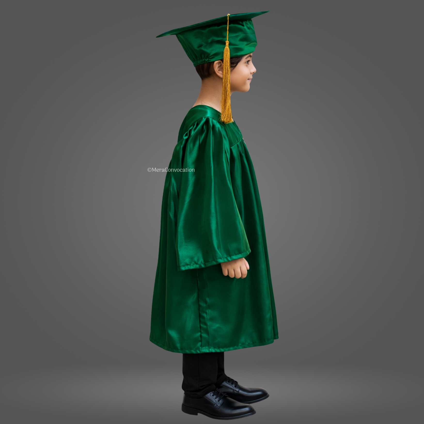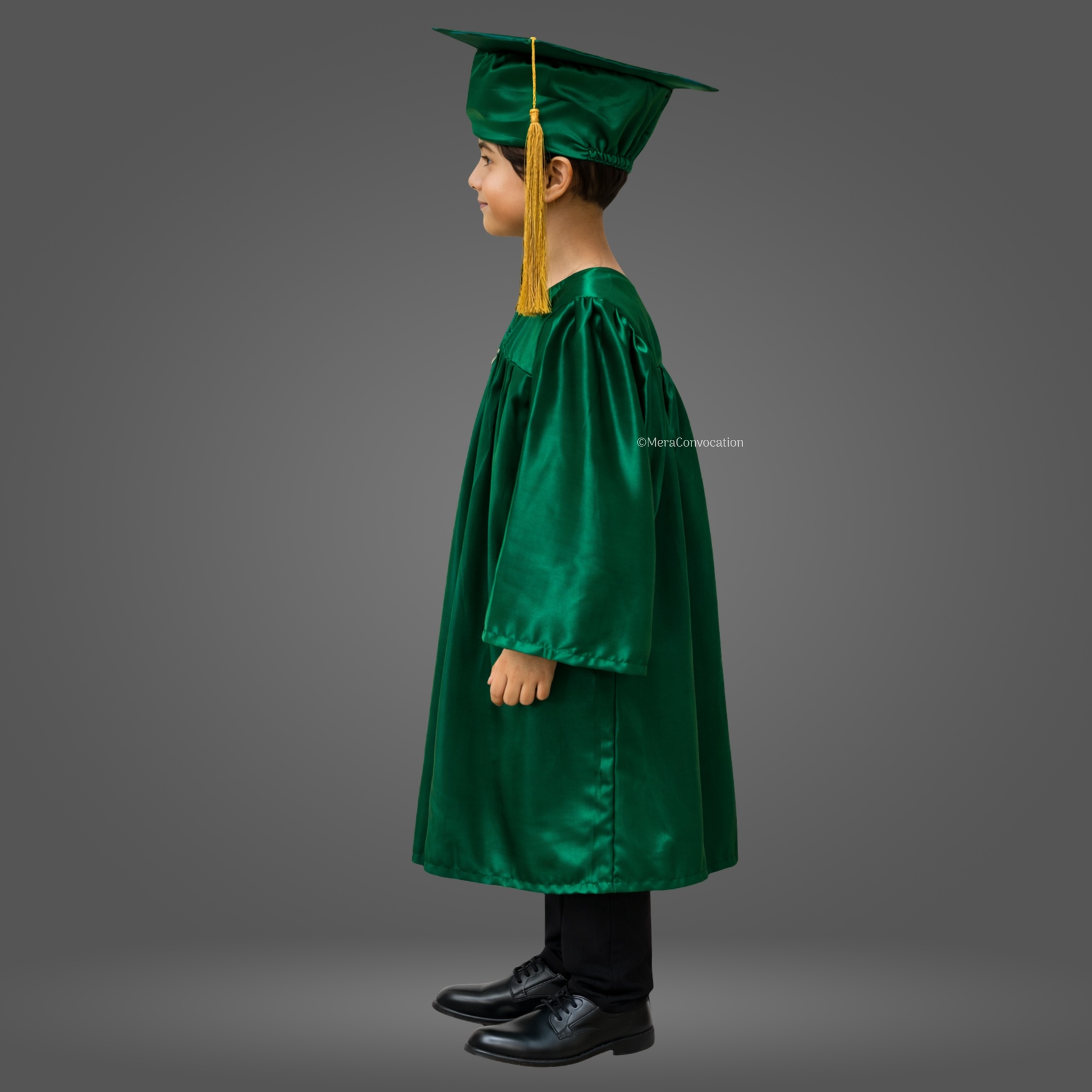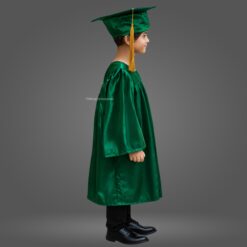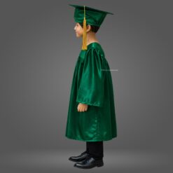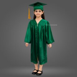 Bottle Green Shiny Nursery Kids Graduation Gown & Cap Set. Crafted from premium satin fabric with a glossy finish, this complete graduation set is designed for comfort and style.