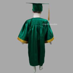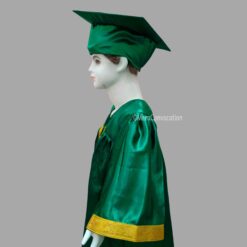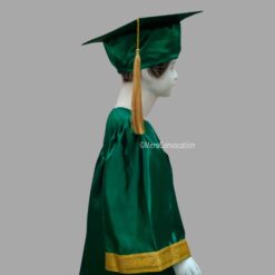 Bottle Green Shiny Nursery Kids Graduation Gown with attached Golden Border and Cap! We use the best quality satin fabric to make a complete graduation gown & cap.