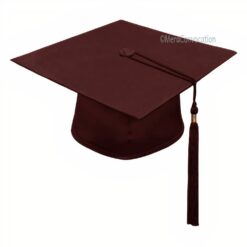 Dark Maroon Front Open Matte Graduation Gown and Cap