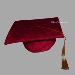 Dark Maroon Matte Velvet Graduation Gown & Cap! We use the best quality premium velvet fabric along with the Golden stitched jari border to make a complete graduation robe.