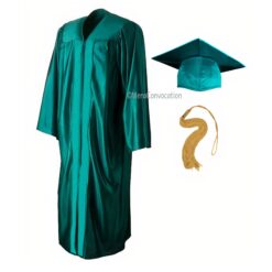 Introducing our Emerald Green Shiny Zipper Graduation Gown and Cap Set, crafted from premium quality satin fabric for a sleek and elegant look.