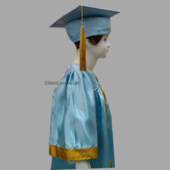 Gray Shiny Nursery Kids Graduation Gown with attached Golden Border and Cap! We use the best quality satin fabric to make a complete graduation gown & cap.