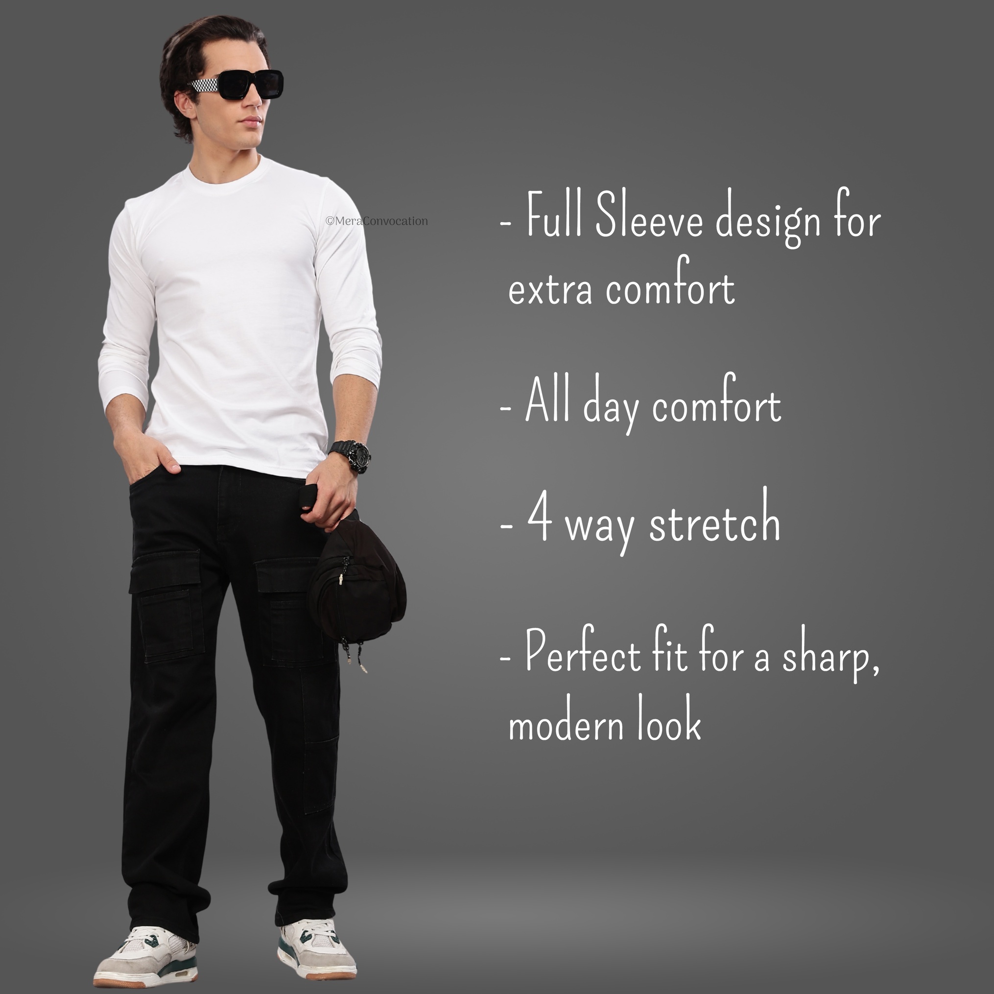 No flashy logos! Just solid 220 GSM full-sleeve tees made from 100% premium cotton. Soft, breathable, and built to last. Perfect for wear, street style, or layering. Holds its shape and elevates your basics every year.