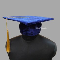 Navy Blue Premium VIP Glossy Velvet Graduation Gown & Cap! We use the best quality premium velvet fabric along with the Golden stitched jari border to make a complete graduation robe.