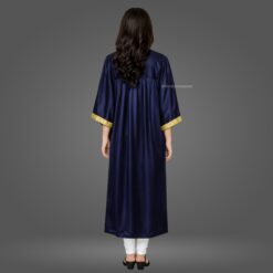 This Navy Blue Shiny (Silk) Graduation Gown & Cap adds a formal and elegant touch to your ceremony. Made from premium satin fabric with a 1.5-inch golden border, this complete set is designed for a refined graduation look.