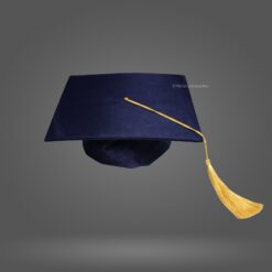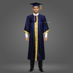 Navy Blue Shiny Graduation Gown and Cap with Golden Border