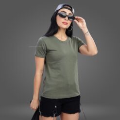 Olive Green Premium Crew Neck Tshirt for Women
