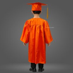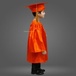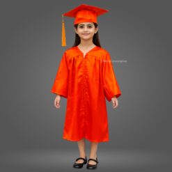 Orange Shiny Nursery Kids Graduation Gown & Cap Set. Crafted from premium satin fabric with a glossy finish, this complete graduation set is designed for comfort and style.