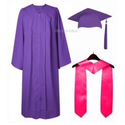 Purple Matte Graduation Gown and Cap with Pink Stole