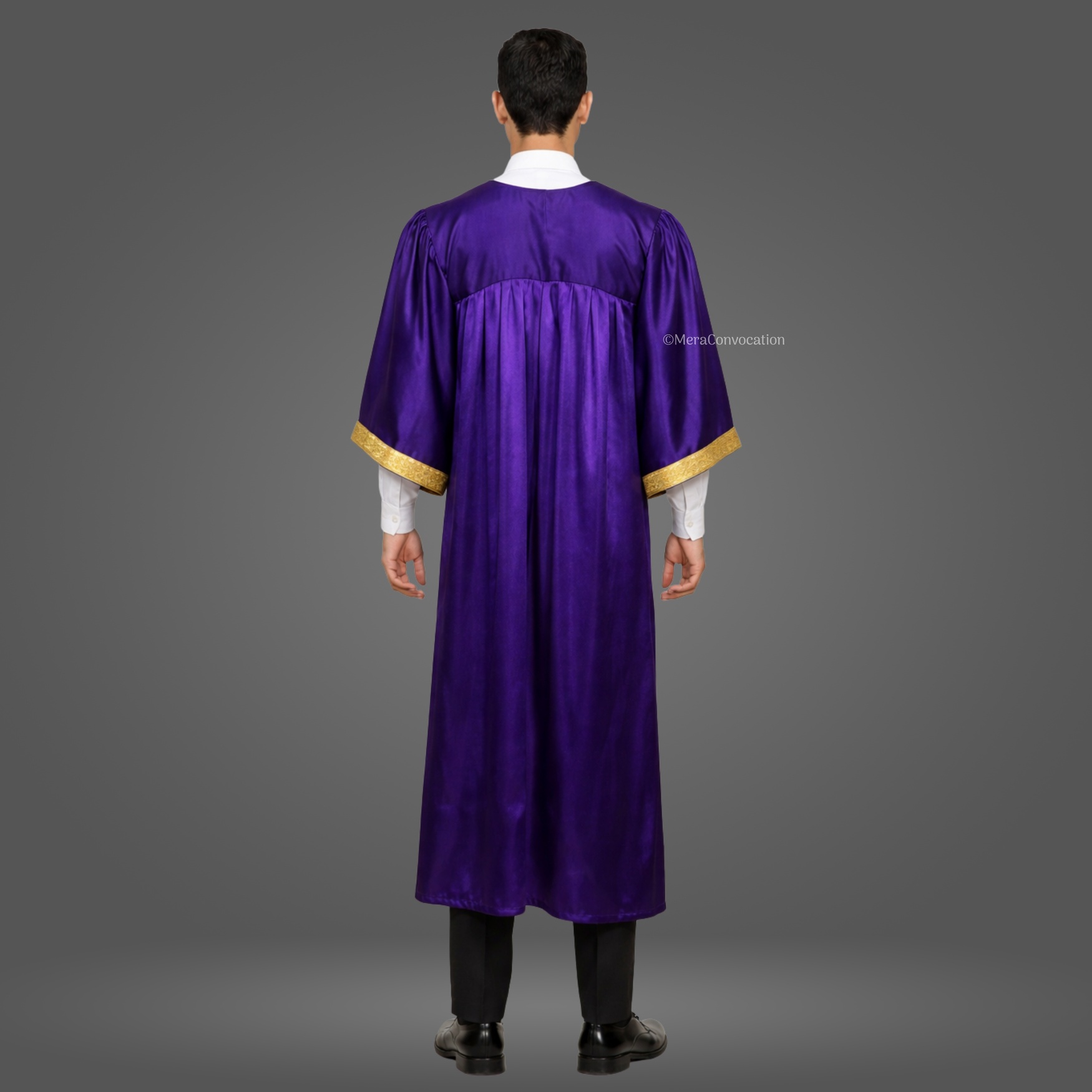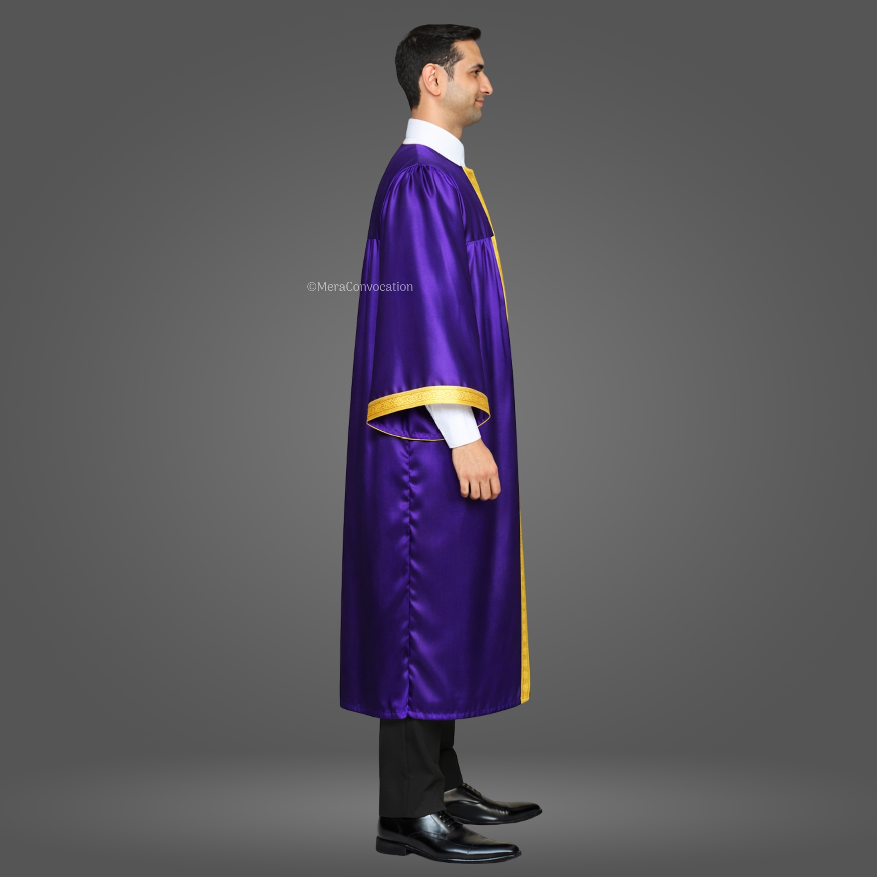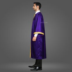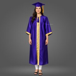 This Purple Shiny (Silk) Graduation Gown & Cap adds a formal and elegant touch to your ceremony. Made from premium satin fabric with a 1.5-inch golden border, this complete set is designed for a refined graduation look.