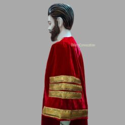 Introducing our exquisite Red Premium VIP Glossy Velvet Graduation Gown with three sleeves border & Cap! Crafted from the finest quality glossy velvet fabric, each robe is meticulously adorned with a luxurious golden stitched jari border, ensuring a distinguished and elegant appearance.