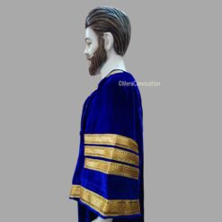 Introducing our exquisite Royal Blue Premium VIP Glossy Velvet Graduation Gown with three sleeves border & Cap! Crafted from the finest quality glossy velvet fabric, each robe is meticulously adorned with a luxurious golden stitched jari border, ensuring a distinguished and elegant appearance.