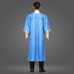 Sky Blue Shiny Graduation Gown and Cap with Golden Border