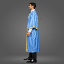 This is Sky Blue Shiny (Silk) Graduation Gown and Cap with Golden Border. We have used the best quality of satin fabric to make this complete set of graduation robes. For more information about the product, kindly refer to the main description.