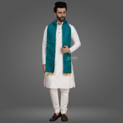 White Kurta Pajama and Peacock Green Stole