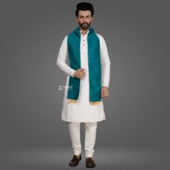 White Kurta Pajama and Peacock Green Stole