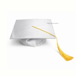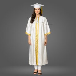 White Shiny Graduation Gown and Cap with Golden Border