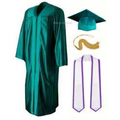 This Emerald Green Graduation Gown, Cap, and the White Stole along with the lavender piping bring a formal elegant look to your graduation ceremony. We have used the best quality satin fabric for the gown & cap along with the white satin fabric for the stole. The stole is 2 Meters long and the width is 5 Inches.
