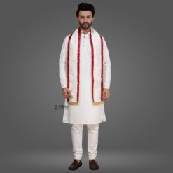 Celebrate achievements in style with our White Dupion Cotton Convocation Stole with Red Border, a timeless piece designed to complement the dignity of graduation ceremonies. Made from premium Dupion cotton, this stole offers both comfort and sophistication, ensuring graduates feel confident and proud on their special day.