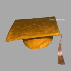 Yellow Matte Velvet Graduation Gown & Cap! We use the best quality premium velvet fabric along with the Golden stitched jari border to make a complete graduation robe.