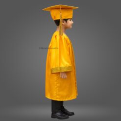 Yellow Shiny Nursery Kids Graduation Gown attached with 1.5 Inch Golden Border & Cap Set. Crafted from premium satin fabric with a glossy finish, this complete graduation set is designed for comfort and style.